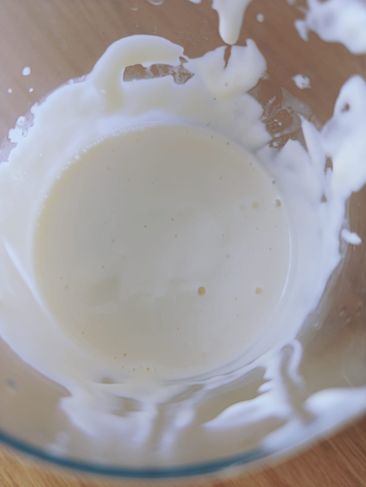 - Using a Hand Blender / Immersion Blender: Place the blender at the bottom of the jar. Turn it on and keep it still for about 10–15 seconds until you see the mayonnaise emulsifying (turning thick and creamy).